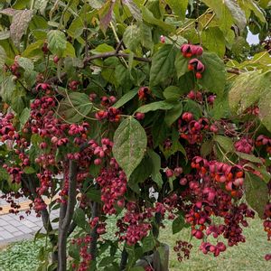 お庭より… 秋が深まりました🍂 ベニセンゴクマユミ(紅千石真弓) ツリバナ(吊花) ツルウメモドキ(蔓梅擬) シロシキブ(白式部)=シロミノコムラサキ コムラサキ(小紫) ⚫︎⚪︎⚪︎⚪︎⚪︎