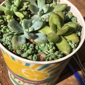 ホームセンターで買ってきた寄せ植えセットをセリアで売ってたレモン缶に寄せ植え♪ 初めて寄せ植えしたけどバランスが中々難しい(^^; 茎から出てたブロンズ姫も一緒に植えちゃった♪ そして、名前が分からない子が多い😅 多分1つはパキフィッツム系だと思うけど💦💦