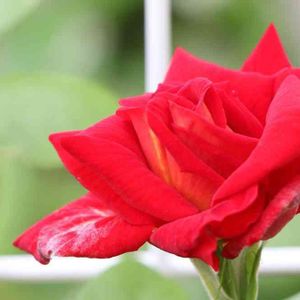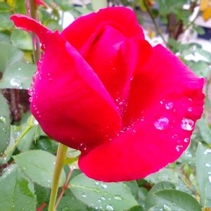 「かがやき」その名前にふさわしく、花全体でひかりを放つような色合いです✨ ビロードのように艶やかな緋赤色の花弁が美しいバラです🌹✨ 花形は剣弁平咲きで、満開になると、花弁がくるっと反転しますが、開きかけの美しい花形を長く保ってくれるんです。すばらしいですね。 世界的にも評価の高いバラで、1967年にハーグ国際コンクールで銀賞を受賞しています🥈😂 🏷真っ赤な火曜日💝