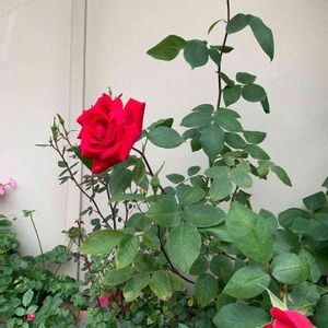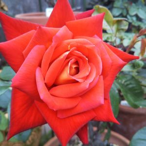 実家の真っ赤な鉢植えのバラ、多分「かがやき」。 次々と開花し始めてました!