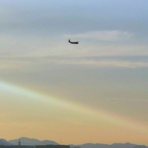 夕陽のお団子🤭 黄昏を飛ぶ飛行機野郎?