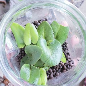 記録 アリフォーリア ハイドロボールでガラス瓶に 根っこはある程度洗って土をおとした もっと茎が長くてびろーんとしたのがネットではたくさん 葉っぱはハート型になるらしい