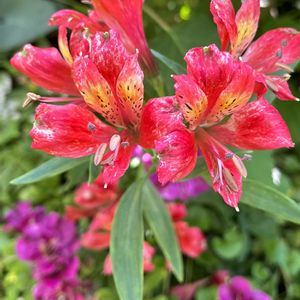 ①②③アルストロメリア・レッドスターが目立ってきました.•*¨*•.¸¸♬ 下の赤紫はルイーズです。 ④⑤このコは、ホムセンで見切り品になってたファビアナ✨ お迎えしようか検討中(˘꒳˘ ก)💭💭💭