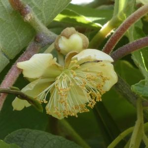 「今日のお花」 *キウイ* 周辺の農家さんで見掛けました。 お花が咲くのは、5月頃。 淡いクリーム色のお花です。