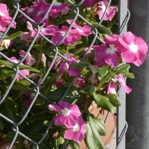 「ニチニチソウ」 暑い☀午後、フェンスから出て咲いているお花たちを見つけました。 🏷月曜日は元気色の花