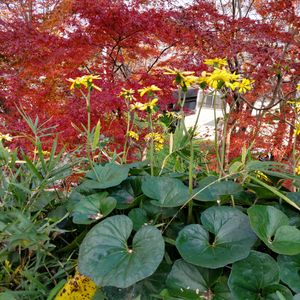 「今日のお花」 *ツワブキ* モミジ🍁と一緒に。