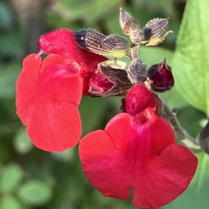 真っ赤なチェリーセージ🍒🍒(2枚) 小さなお花ですが、可憐な赤いお花❤️🌿❤️ 🏷️真っ赤な火曜日 🏷️秘密の花園♡ 🏷️一期一会のお花♡ 🏷️花咲く乙女たち♡