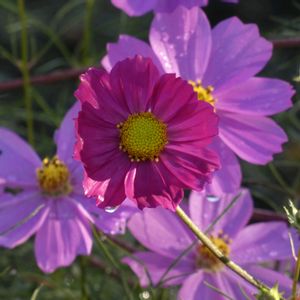 「コスモスたち」 おはようございます😊 畑で、元気いっぱいに咲き続けています。 🏷月曜日は元気色の花