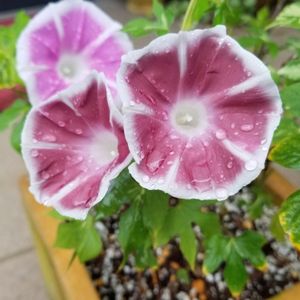 ハンキング朝顔❤恋しぐれ ♡その1 今年も育てています。 涼しくなってきてからのほうがたくさん咲いてます😄