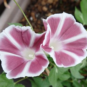 しだれアサガオの恋しぐれ、チョコレートです🤗✨ ちょっと珍しげだったので、育ててみました😋💡 茶色っぽい花が綺麗な品種です🍫 種を取って来年もなんて思っていますが、アサガオは繰り返すと劣化するって聞いたような…🤔❓