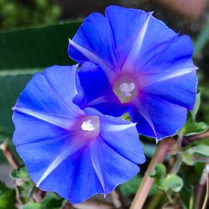 しだれあさがお、恋しぐれのディープブルーです😆✨ 青好きにはたまらない可愛さ☺️✨ 葉は斑入りで垂れ下がるように育つので、吊り下げても綺麗なアサガオです🤗🌼
