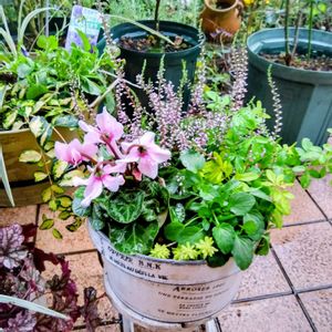 こんばんは🌛 ①②③買っていたシクラメンやビオラを寄植えでリーフだけ残った鉢で寄植えにしました🌿 ①はラベンダーピンクのようなカルーナガーデンガールズに出会えたのでペチコートと一緒に植えました🩷💜🌿 ④ガーデンシクラメン ジックスとビオラと残ったリーフと植えようとしたら、土が無くなってしまって😂土を買いに行きましたが、帰って来たら真っ暗になったのでまた後日植えます😅 チューリップ🌷もそろそろ植えていいのか迷い中。