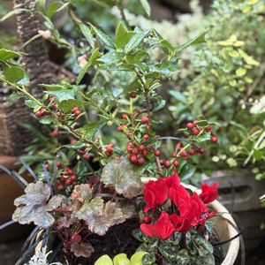 1️⃣去年友達にあげて戻って来た クリスマスホーリー 実が真っ赤になって来ました🔴 2️⃣3️⃣バラを貰いました🌹 庭のお花と一緒に飾りました🤗