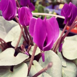 前から欲しかったミニシクラメンのブルーインプレスがプライスダウンで半額になってた❣️¥500也❣️ "コレは買うしかないでしょ"‥って連れて帰った〜 綺麗な色の花💜とシルバーリーフ🩶が素敵すぎやわ〜🥰💗💖 この寒波に耐えてくれますように🙏って事で雪❄️が降るかもなのでビニールカバーの下に移動させたわ〜🙆♀️