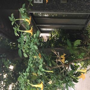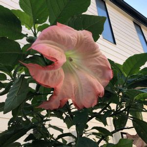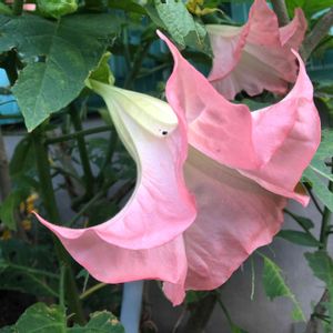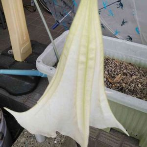 近所のお爺さんからエンゼルトランペットを貰いました。 お爺さんは 「芸者花」と言っていました。 なぜ? 夕方にいい匂いのする花を咲かせるから 芸者に例えた見たいです。😅 お爺さんにエンゼルトランペットと言っても分かりそうもないので 「芸者花」で育て行きます。笑
