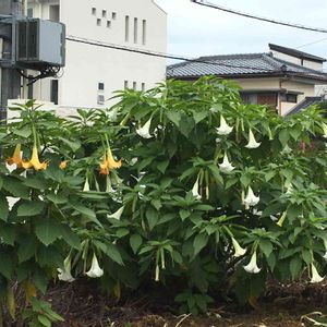 近所のエンゼルトランペット 株を増やしたみたい 今年見事に オーケストラみたい