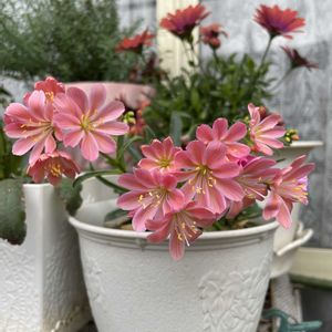 まだまだ咲いてくれるレウィシアさん✨ 6月に入って蕾もいくつか💖 もう少し楽しめる〜ウキウキです🥰 陽当たりの良いベランダは 種まきしてる🌱ポットが並んで🌱 夏が楽しみです🎶