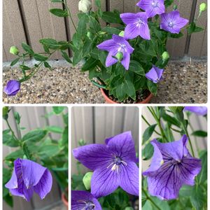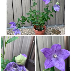 2023.10.22 紫のキキョウ達😻💞 ⬆️:紫の一重咲きキキョウ 去年、実家から貰った種から育て、鉢ごと地植えして 冬越ししたクネクネ君の2番咲きです ⬇️:ダブルのキキョウの紫 今朝、掃除中に誤って隣りの鉢にぶつけてしまい、茎 が折れてしまい慌てて花瓶に生ける🥺 鉢植えは、現在、白の斑入りのみ咲いている