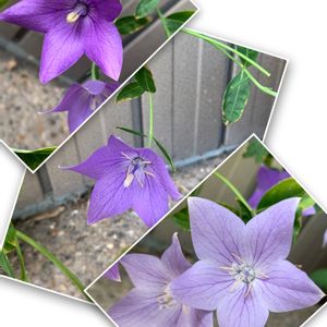 2024.9.23〜10.1 撮影 剪定後また咲き出した我が家 のキキョウ達 1枚め:白の一重咲き 2枚め:白に紫の斑入りの八重咲き 3枚め:紫の一重咲き 4枚め:白の八重咲き