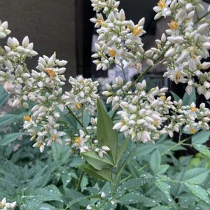 雨の日の☔ナンテンと紫陽花💙 もっとお花が広がるのかも〜 でも、雨に濡れているがいいかな♡ お散歩ちゃんもまとって! 朝のバタバタの中💦 pic撮ってから出勤でした〜😆