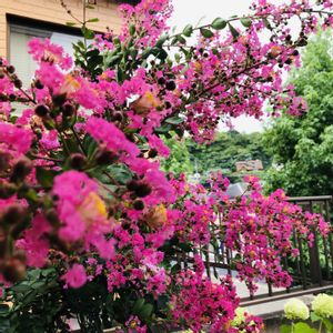 ①百日紅 ほぼ満開に♪ ②ブッドレアパグスターピンカー 先月植え付けてひとつ目の花 これからスクスク大きくなってね