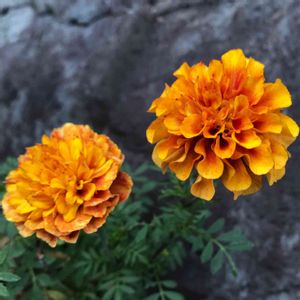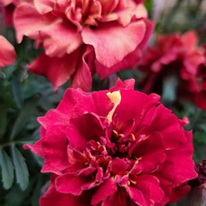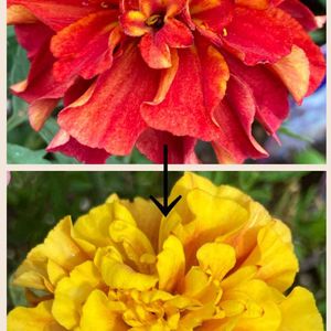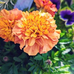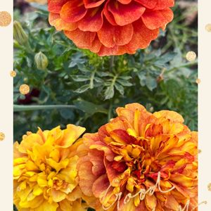 マリーゴールド ストロベリーブロンド 八重咲きのマリーゴールド 初春はサーモンピンクからオレンジイエローの混合色 夏から秋はイエローからサーモンピンクに変化します💕