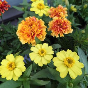 夏の明るいレモンイエローは意外と少なくて ジニアにその役を担っていただいている アンティークタイプのマリーゴールド、真夏は葉が元気なくなりがち‥ 秋からは活躍していただく