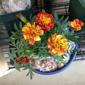 フレンチマリーゴールド "ストロベリーブロンド" カインズでとってもお値打ちだったので、豪華に3株植えしてあります♩ フォロワーさんの所で見かけてかわいいなぁと思ってたんです(o´艸`)🧡 ナチュラル感いっぱいに寄せてみました🌿 大きめの鉢は実家から掘り出してきた😂 ビオラの寄せ植えもまだ片付いてないのに、また増やしてどーする🪴笑 使用リーフ🌿 ・オレガノ バリエガータ ・ワイヤープランツスポットライト ・へーべ ジョアンマック