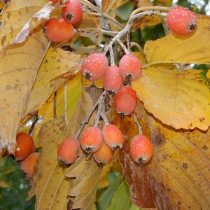 神戸市立森林植物園で出会った赤い実たち ①ウラジロノキ バラ科 アズキナシ属 初めてです。森林植物園の木としてこの木を掲載されていた方が居られたので、名前が分かりました。 ②ナナカマド バラ科 ナナカマド属 福島の方などにはお馴染みの木のようですが、こちらでは滅多に出会えません。 ③ガマズミ ガマズミ科 ガマズミ属 ④カラスウリかな?ウリ科 カラスウリ属