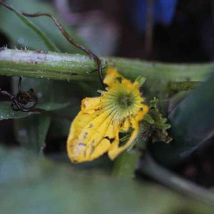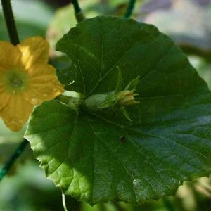 2017.7.15 ミニメロンに実がつきました。 自然に受粉したみたい。 なんとか収穫できますように。