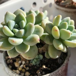 エケベリア属ラウル ロッティと何が違うのか、全く見分けがつかない子🤣 枝から増える品種ですが、葉挿しでも、まあまあ成功率高いです。ただし、葉挿しは、やはり時間がそこそこ掛かります。 紅葉時期の冬には。縁が薄くオレンジがかって可愛い子です❤️ 最近、ピンクラウルが人気で、ネットや多肉店でよく出回っていますね😊 大株に育てたい子の1つです。 #多肉植物 #初心者向け多肉 #寄せ植え向け多肉 #増やしやすい多肉 #tonのお気に入り多肉
