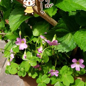 月桃の鉢にいつの間にか居着いている ピンクのカタバミ🩷 どこから来てくれたのかな 月桃は植え替えたいのだけれど…