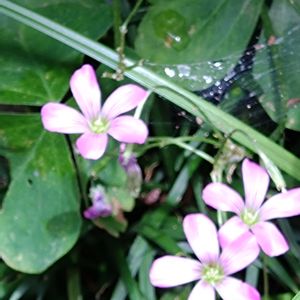 💐今日のお花💐 🌼カタバミ🌼 今日の庭には多分 黄色のカタバミは見当たらずピンクのカタバミは所々で咲いていました (⌒▽⌒) しかし 可愛いのですが増えるのでほとんど抜いてしまいます(T_T) 私に抜かれないカタバミはラッキ~かも(笑)
