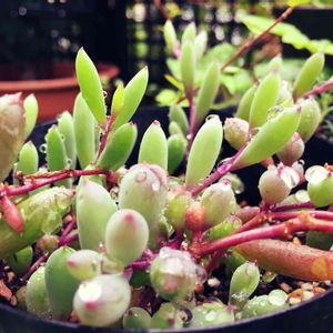 こんばんは〜♪(o'ー'o)ノ 久しぶりに夜空を見上げてみましたが、星1つなかった😭 九州は下り坂でこれから数日?雨予報(꒦ິ⌑꒦ີ) 台風はどうなったのかしら?笑 前回の投稿後気がつきました💦 なので軒下日陰組全部じゃないけど強い雨が心配で避難しました。 前置きが長くなりましたが、久々登場のルビネちゃん。一部シワがよって梅干しみたいになってますが、雨が終わってから水やりかなぁ。先月は酷い雨で軒下も雨ざらしになっちゃったのと水やりしたの合わせて計3回くらいかなー。 紫月って感じの色合いもミドリンも好きです❤️ルビネは雨晒しにしても大丈夫とはいうけれど年中雨晒しにしてた元株を見るとボロっボロなので長雨には当てないようにしてて水やりは雨が終わってからかなー。おあずけよ(*´罒`*)ニヒヒ♡︎