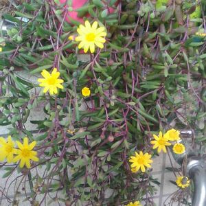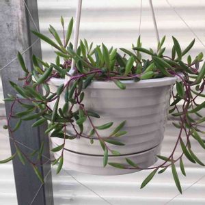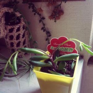 白いリメ缶のルビーネックレスがうちでは一番紫色です!他のはミドリン。いつか嫁に出そうとたくさん鉢に植えてます。 元株はハンギングの鉢に植えてますが、寒波以外基本外に置いてるので結構傷みました(T_T) リメ缶のはほんの2本くらいを植えたもので気がつけばかなりモサモサ。そろそろ整理しなきゃなぁと思いつつなかなか(;^_^A 今日は微妙な晴れだけど、明日はもっと太陽浴びて日光浴してね!