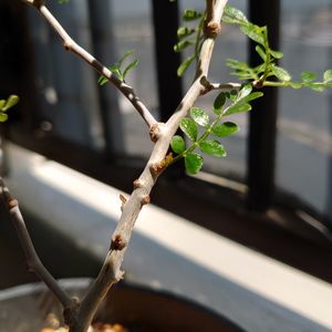 窓辺のオペルクリカリア・パキプス 室内に入れてから特に変化なし。 落葉するのか、残るのか。🌿