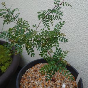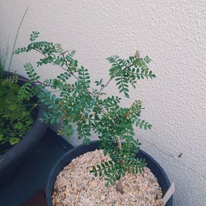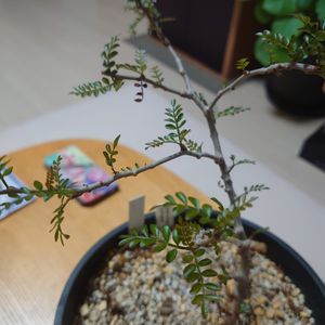 センナ・メリディオナリス とりあえずパキプス買った時の鉢に植え替えました。風強いので心配。