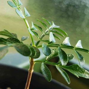 実生苗を買って1週間 パキプスくんは じわじわ葉を伸ばしています😊 ツヤツヤの葉っぱ🌱💕