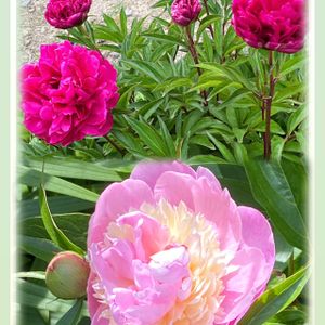 多忙で投稿今頃になってしまいました。 シャクヤの花が咲きました。 花言葉は「恥じらい」「はにかみ」 赤のシャクヤクは小ぶり ピンクは大輪でどちらも綺麗に 咲きました🌸🌼🌸 🏷️紛紅駭緑 🏷️桃色百花繚乱 🏷️太陽がくれた季節a 共に参加します この後もよい日でありますように😃