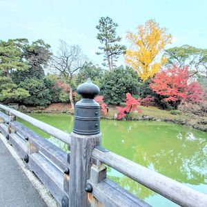 11月25日(火) 京都御所にて その3 五摂家 九条邸跡 高倉橋 (肝心の拾翠亭が写ってない😭) 厳島神社の古びた鳥居は なんと平清盛建立〜❗ 3枚目 清水谷家の椋 樹齢300年,幹は4m 4枚目 蛤御門 門に蛤御門の変の時の 長州藩士の銃弾跡が しっかり残っています。