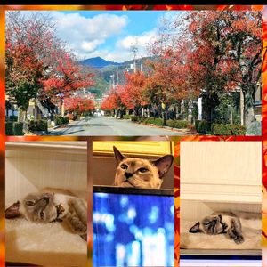 毎月22日はニャンニャン祭り𓃠🩷 秋の夜長は寝るっきゃない〜❗❗ ニンゲンはTVばっかり観て ぜ〜んぜん遊んでくれないし TVの後ろはポカポカ暖かいし ビバーチェ😻🐾はニンゲンを見下ろして ずっとプースカ寝ています。 時々こうやって顔を覗かせて笑わせてくれる ひょうきんビバーチェです。 近くのさくら通りも いい感じに紅葉しています〜🍂✨🍂 ちなみに今日は いい夫婦の日なんだって〜🤗
