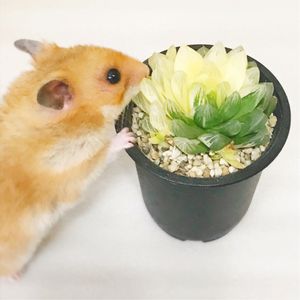 オブツーサ錦&🐹モコ こらこら…💦 ペロペロ舐めるのはやめなさいっ‼️