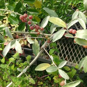 ロシアンオリーブ シルバーリーフに赤い実がついて、とてもかわいいです。 別名ヤナギバグミ、名前はオリーブだけど実はグミ。 寒さに強く生育旺盛です。