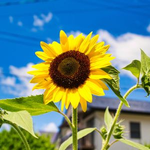 🌻向日葵🌻(ひまわり) お盆休みも終わり 今日から通常モードに ブルーな気分を切り替える為に 自宅のひまわり🌻&青空の写真で スタートしますね😊
