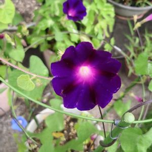 西洋アサガオ 朝から暑いですね~ たった3キロ位のウォーキングなのに フルマラソン走ったような汗が出ます😂