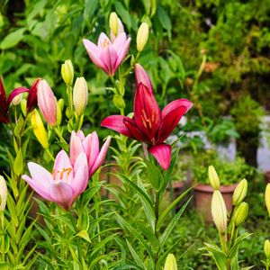スカシユリ 咲き始めました 今年 地植えしたので何かプランターより元気な様な気がします 5色咲くはず?
