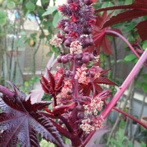 2枚目は「種から育てるのに失敗して、苗を買いましたぁ〜🪴」って言ってた銅葉のリキニス・ニュージーランド・パープルさん🤗💕 (和名のトウゴマとかヒマの方が馴染み深いですよね😉) 鉢植えにしてたから草丈1.5mくらいにしかなってないけど(本来は3m級)、花芽がつきました🌸😍✨ でも、チョット気温が下がって来たので、無事に真っ赤な(?)お花が開花するか心配です😅💦 こんなに大型の植物でも、少なくとも日本国内では『非耐寒性1年草』扱い😳 種が取りたいから、開花しておくれ〜(>人<;) ヒマの種は「ひまし油」と呼ばれる下剤だけでなく、最近は化粧品の原料にもなってるらしいです👀 *金曜日の蕾たち、蕾応援団に参加させて下さい🤗💕