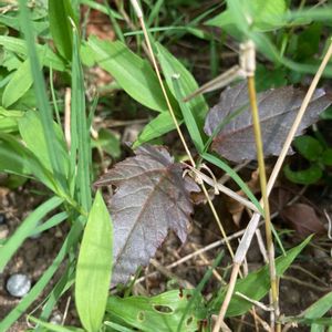 デカめの雑草を抜いてたら見覚えのある葉を発見(๑╹ω╹๑ ) これは銅葉ヒマのニュージーランドパープルの零れ種からの芽ですね(*゚▽゚*) 去年は結実しなかったので一昨年の種からの発芽ですね(*´∀`*) 種子寿命長いんですね(`・∀・´)