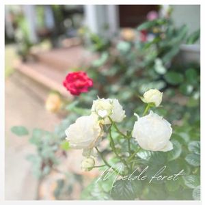 今年の春に河本バラ園さんの園に赴き、ひと目で気に入り最後のひと鉢と言われたのをお願いしてお迎えさせていただきましたミエル・ドゥ・フォレ 可愛らしいフォルムに鮮やかな白。優しい雰囲気の魅力溢れるバラです 深い緑の照り葉と白の花弁とのコントラストが素敵です