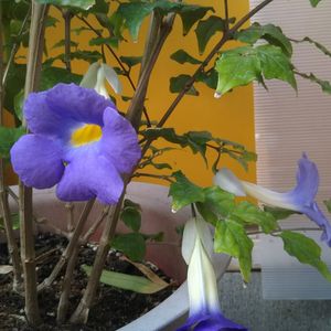 ツンベルギア エレクタ、開花中。 木立性のツンベルギアですね。